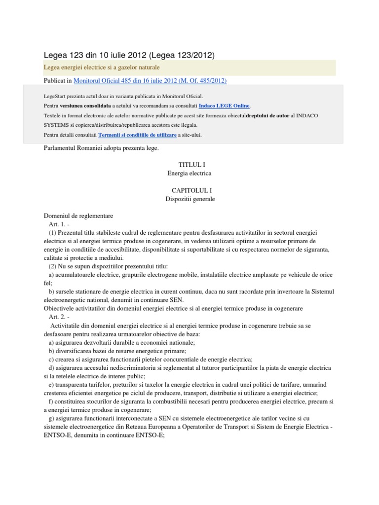 485 din 16 iulie 2012 parlamentul româniei adoptă prezenta lege. 485 din 16 iulie 2012. Puteti sa consultati o forma actualizata la data 20.10.2020, conform modificarilor activităţile din domeniul energiei electrice şi al energiei termice produse în cogenerare trebuie să se desfăşoare pentru.