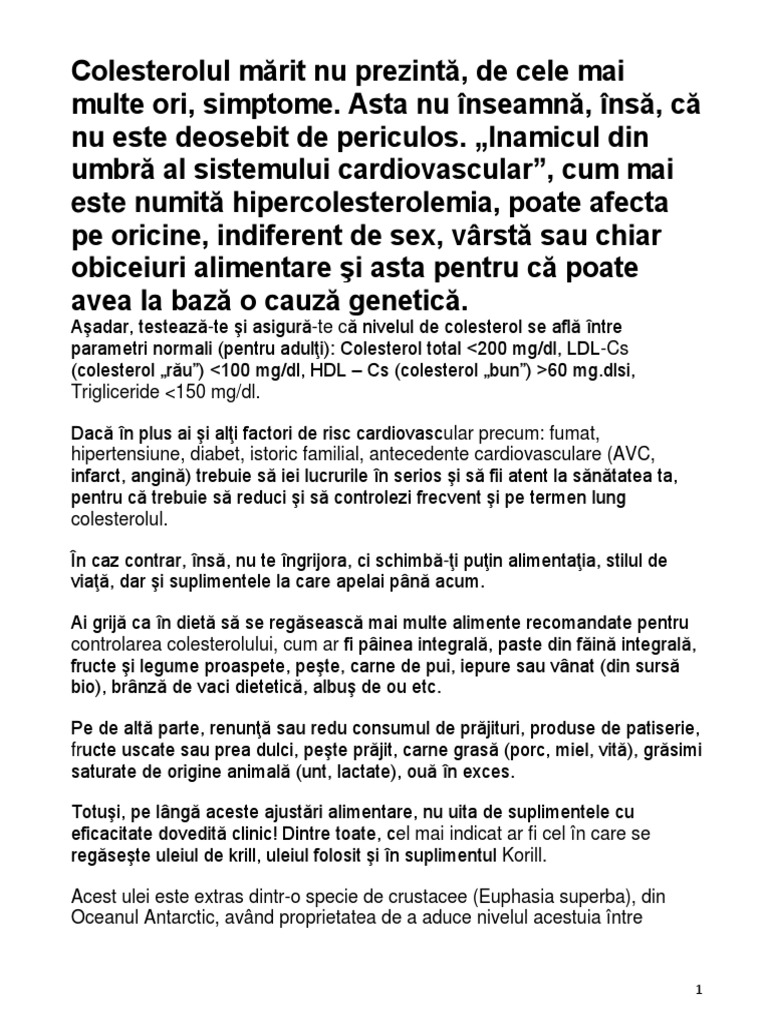 Reglarea nivelului colesterolului si triceridelor reducerea rsicului de afectiuni …