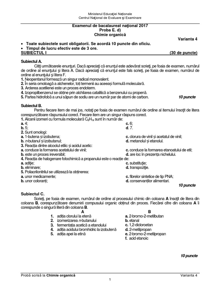 Plus que toute autre science, la chimie organique a son rôle dans notre vie de tous les jours. Prob scris la chimie organic varianta 4. Travaux dirigés de chimie organique.